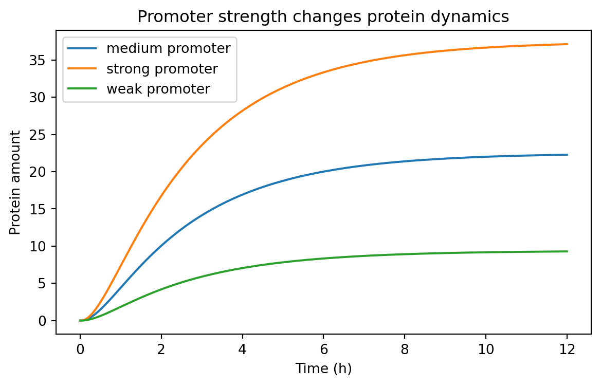 A stronger promoter can increase expression, but so can a lower loss rate.