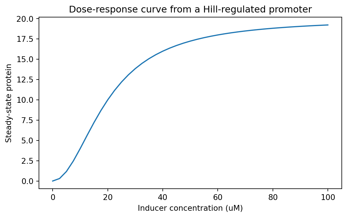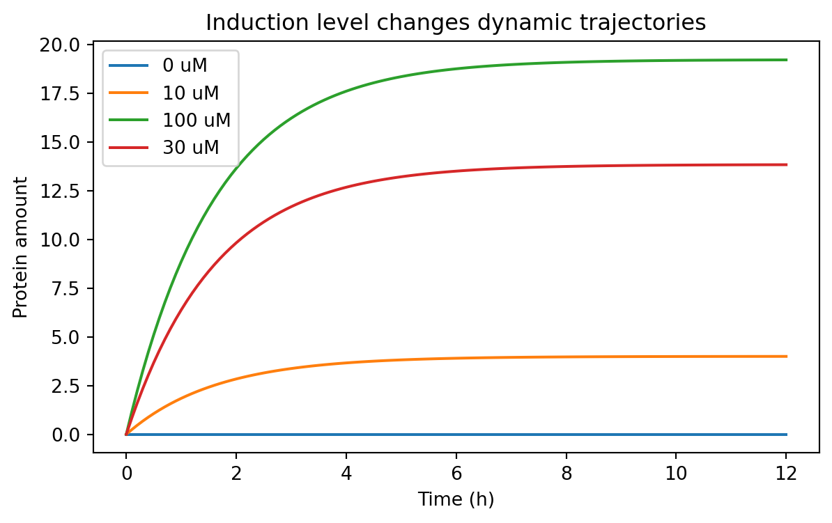 We can simulate a protein model where the production rate depends on inducer concentration.