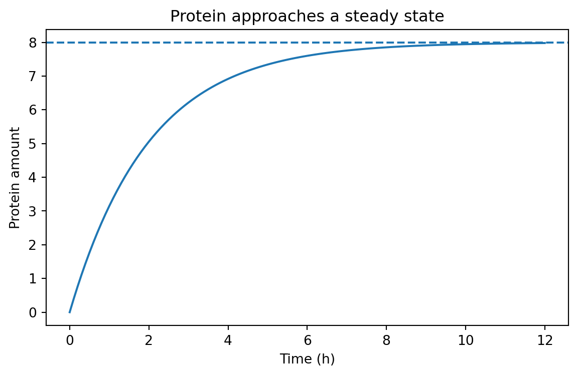 protein = beta / gamma * (1 - np.exp(- gamma * time))